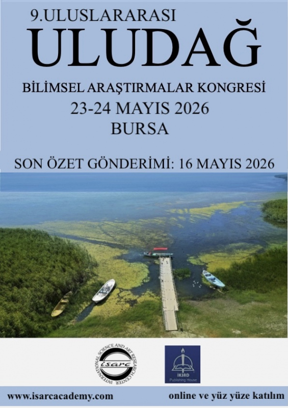 23-24 Mayıs 2026 tarihlerinde Bursa' da yüz yüze ve online olarak düzenleyeceğimiz 9. Uluslararası Uludağ Bilimsel Araştırmalar Kongresinde sizleri de çok değerli çalışmalarınızla aramızda görmek istemekteyiz.